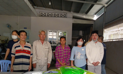 Khóm Mỹ Lộc trao 28 phần gạo hỗ trợ người dân