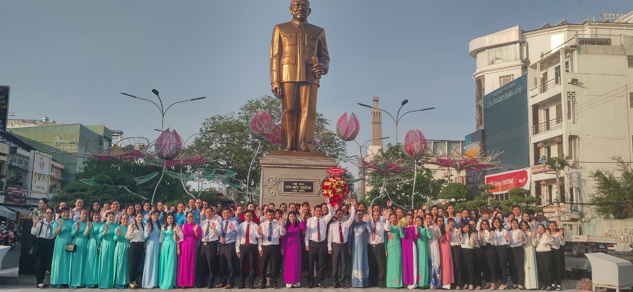 Trước Tượng đài Chủ tịch Tôn Đức Thắng, với lòng thành kính và biết ơn vô hạn, các đại biểu đã dành 01 phút tưởng niệm để tưởng nhớ Chủ tịch Tôn Đức Thắng – một tấm gương mẫu mực về đạo đức cách mạng: suốt đời cần, kiệm, liêm, chính; suốt đời hết lòng, hết sức phụng sự Tổ quốc, phục vụ Nhân dân.